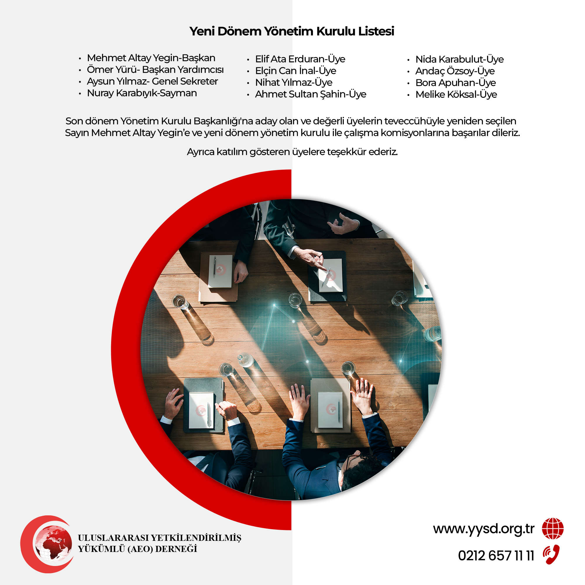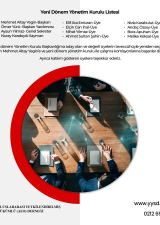 We wish success to Mr. Mehmet Altay Yeğin, who ran for the position of Chairman of the Board of Directors in the last term and was re-elected with the support of our valued members. We also wish success to the new Board of Directors and working committees.