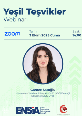 Organized in collaboration between the Energy Industrialists and Business People Association (ENSİA) and the International Authorized Economic Operator Association (UYYSD), the webinar will be conducted by Ms. Gamze SATOĞLU, a member of our Advisory Board.