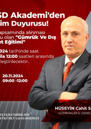Within the scope of the AEO program, the mandatory “Customs and Foreign Trade Training” will be held on 20 November 2024 between 09:00–12:00.
